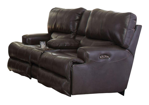 Catnapper Wembley Power Headrest Lay Flat Reclining Console Loveseat in Chocolate